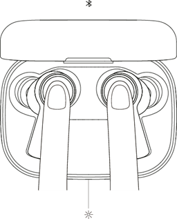 - กดปุ่มสัมผัสมัลติฟังก์ชั่นค้างไว้อีกประมาณ 12 วินาที หลังจากนั้น ไฟสีแดงจะกะพริบ 5 ครั้งบนกล่องชาร์จและการรีเซ็ตจะเสร็จสิ้น